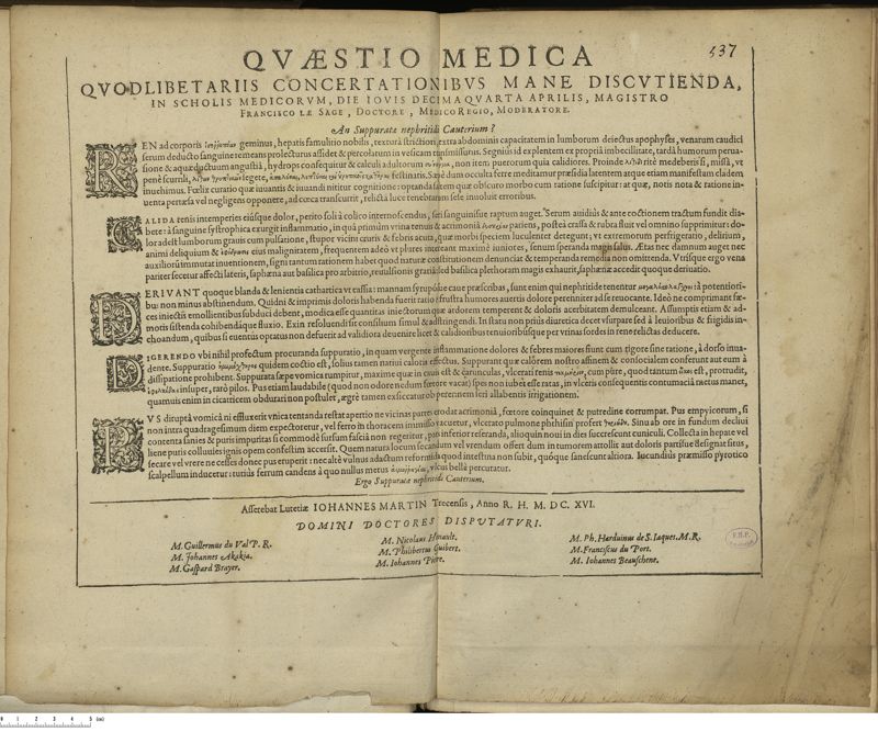 Thèse de médecine quodlibétaire imprimée,