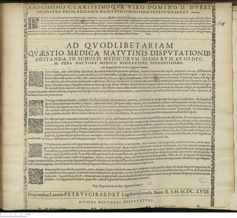 Thèse de médecine quodlibétaire imprimée,