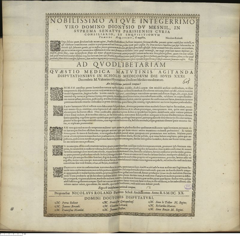 Thèse de médecine quodlibétaire imprimée,