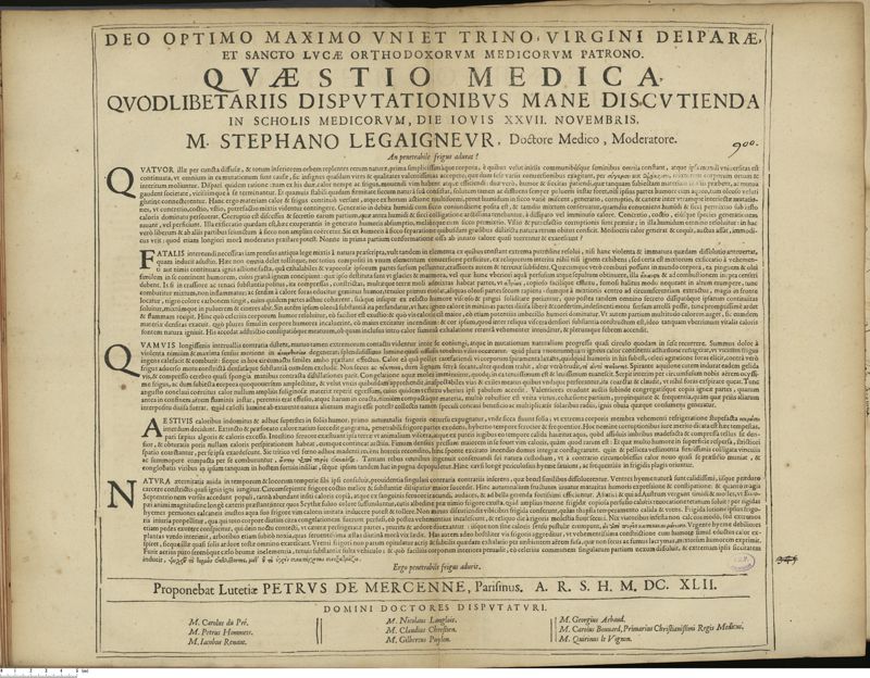 Thèse de médecine quodlibétaire imprimée,