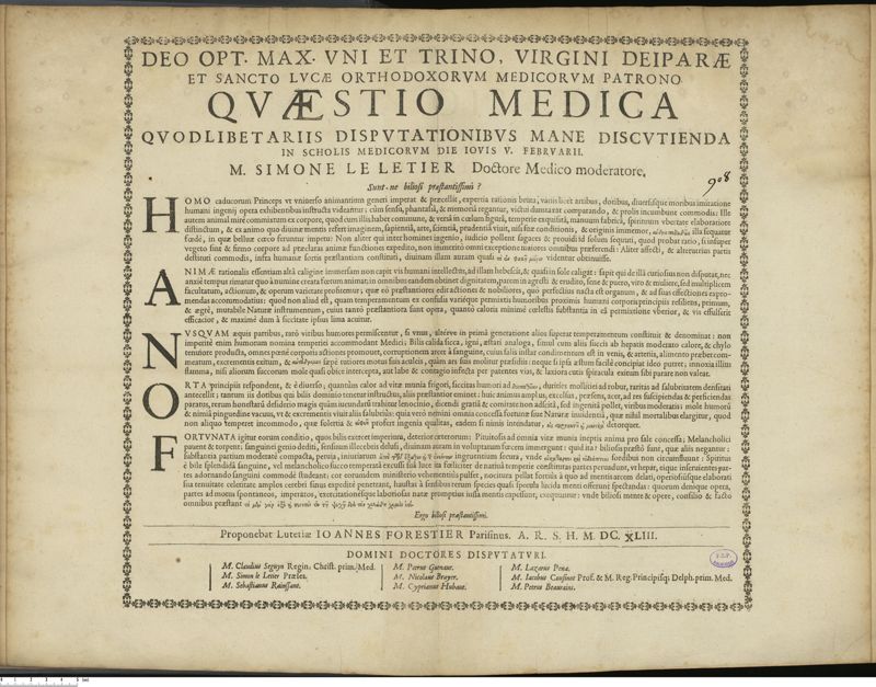 Thèse de médecine quodlibétaire imprimée,