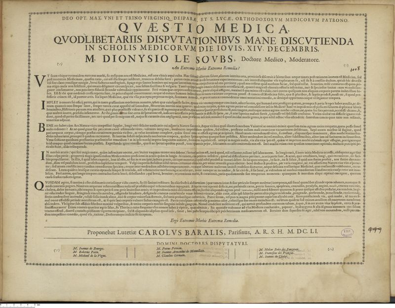 Thèse de médecine quodlibétaire imprimée,
