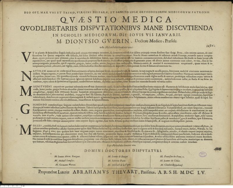 Thèse de médecine quodlibétaire imprimée,