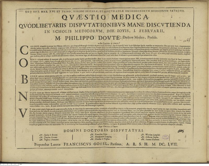Thèse de médecine quodlibétaire imprimée,