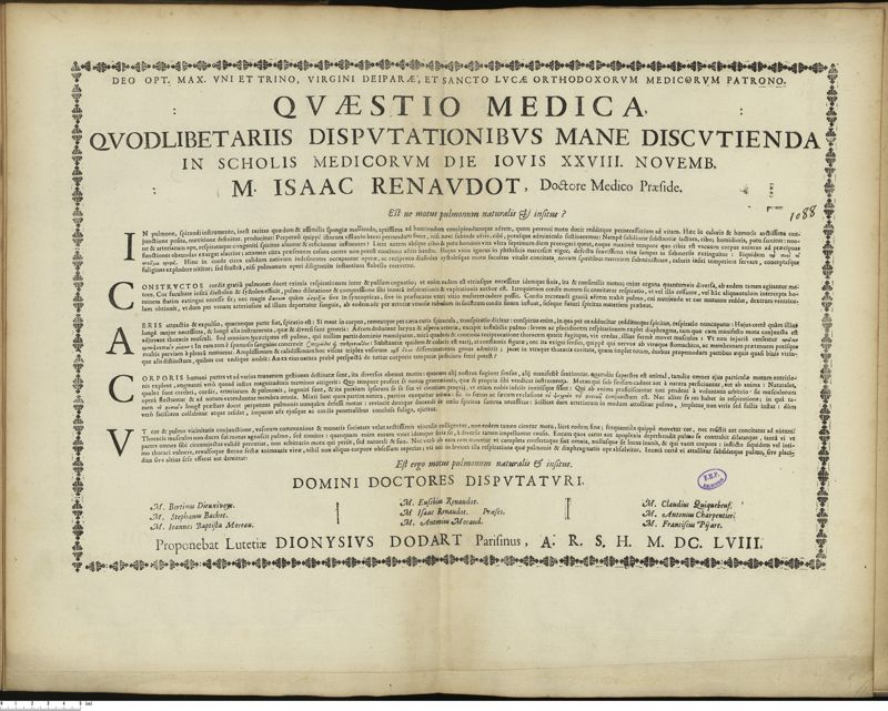 Dodart, Denis - candidat / Renaudot, Isaac - président.