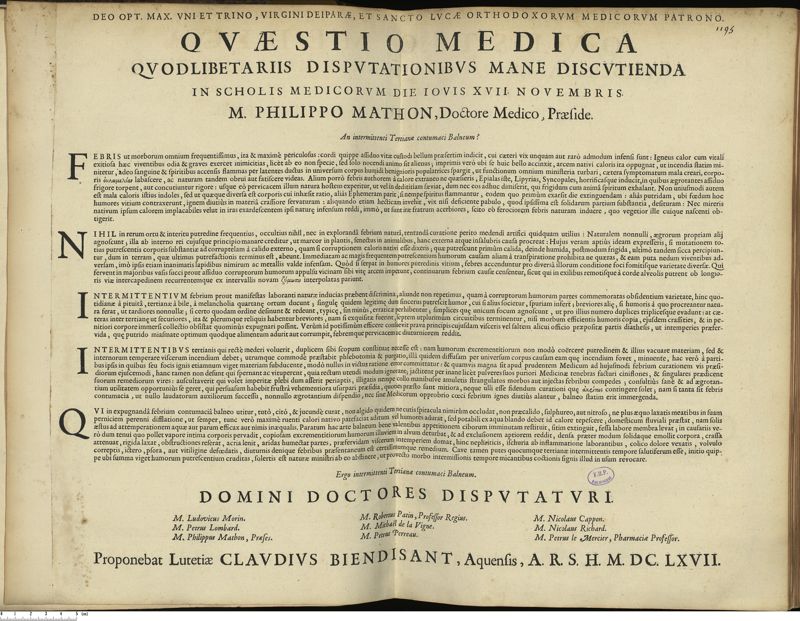 Thèse de médecine quodlibétaire imprimée,