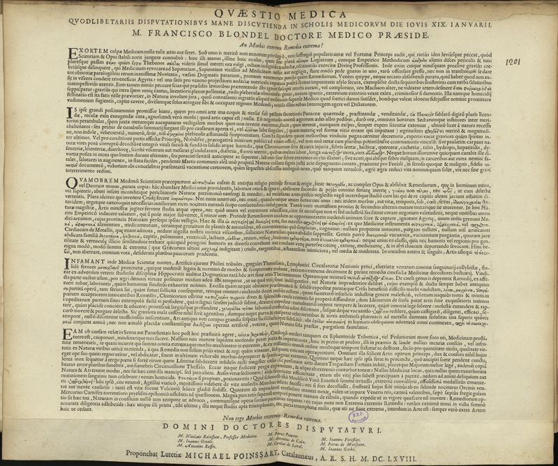 Thèse de médecine quodlibétaire imprimée,