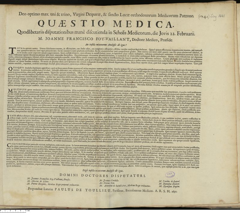 Thèse de médecine quodlibétaire imprimée,
