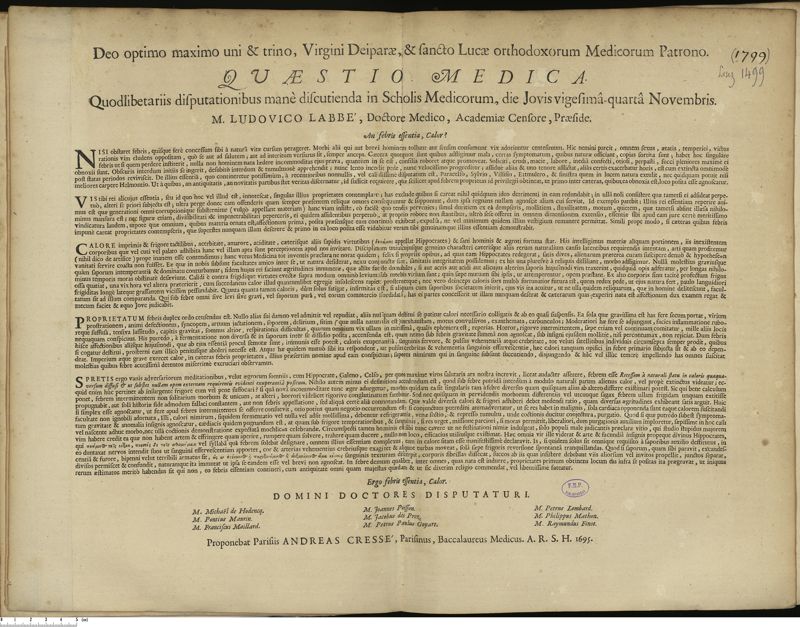 Thèse de médecine quodlibétaire imprimée,