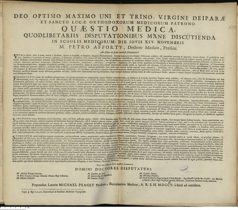 Thèse de médecine quodlibétaire imprimée,