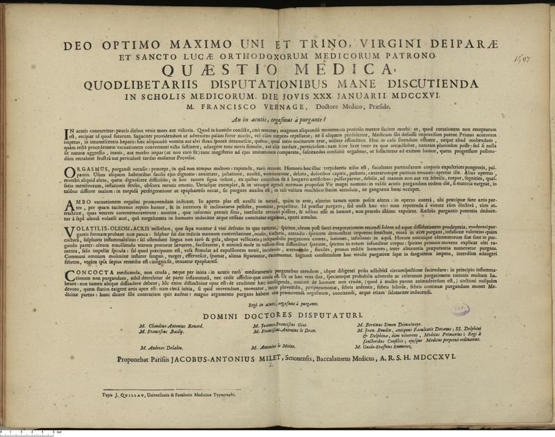Thèse de médecine quodlibétaire imprimée,