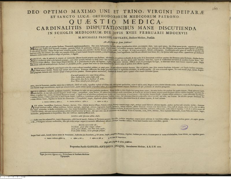 Paris : Typis Jacobi Quillau, Universitatis & Facultatis Medicinae Typographi.