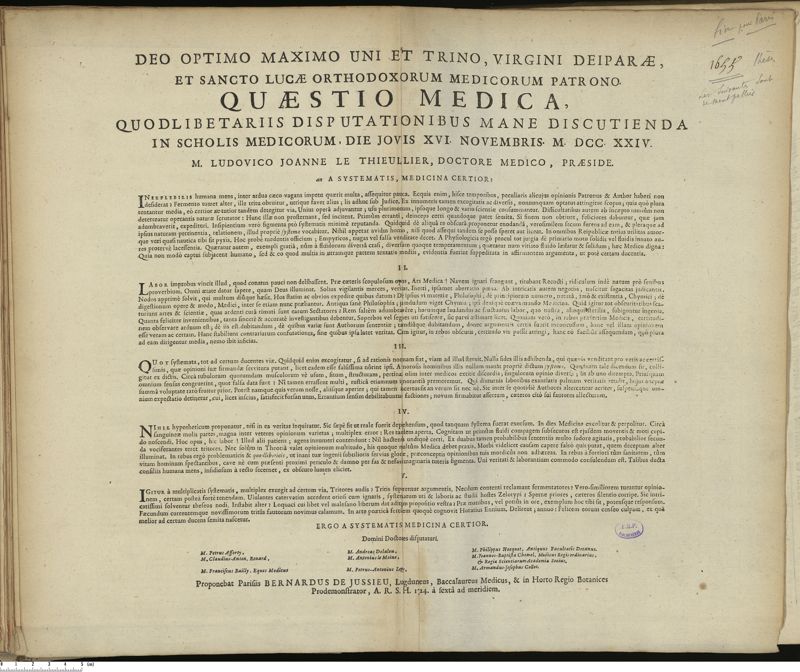 Jussieu, Bernard de - candidat / Le Thieullier, Louis Jean - président.