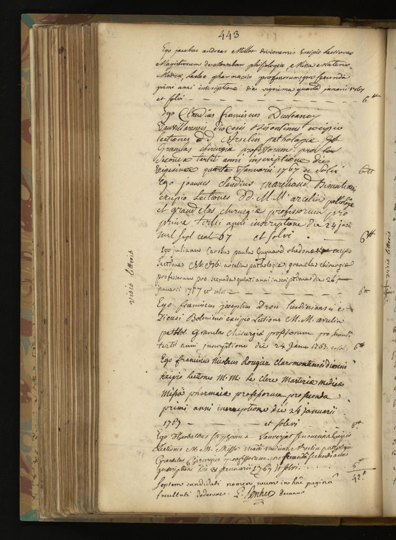 Codex inscriptionum medicinae studiosorum in saluberrima Facultate Parisiensi, a Remigialibus anni... 1753