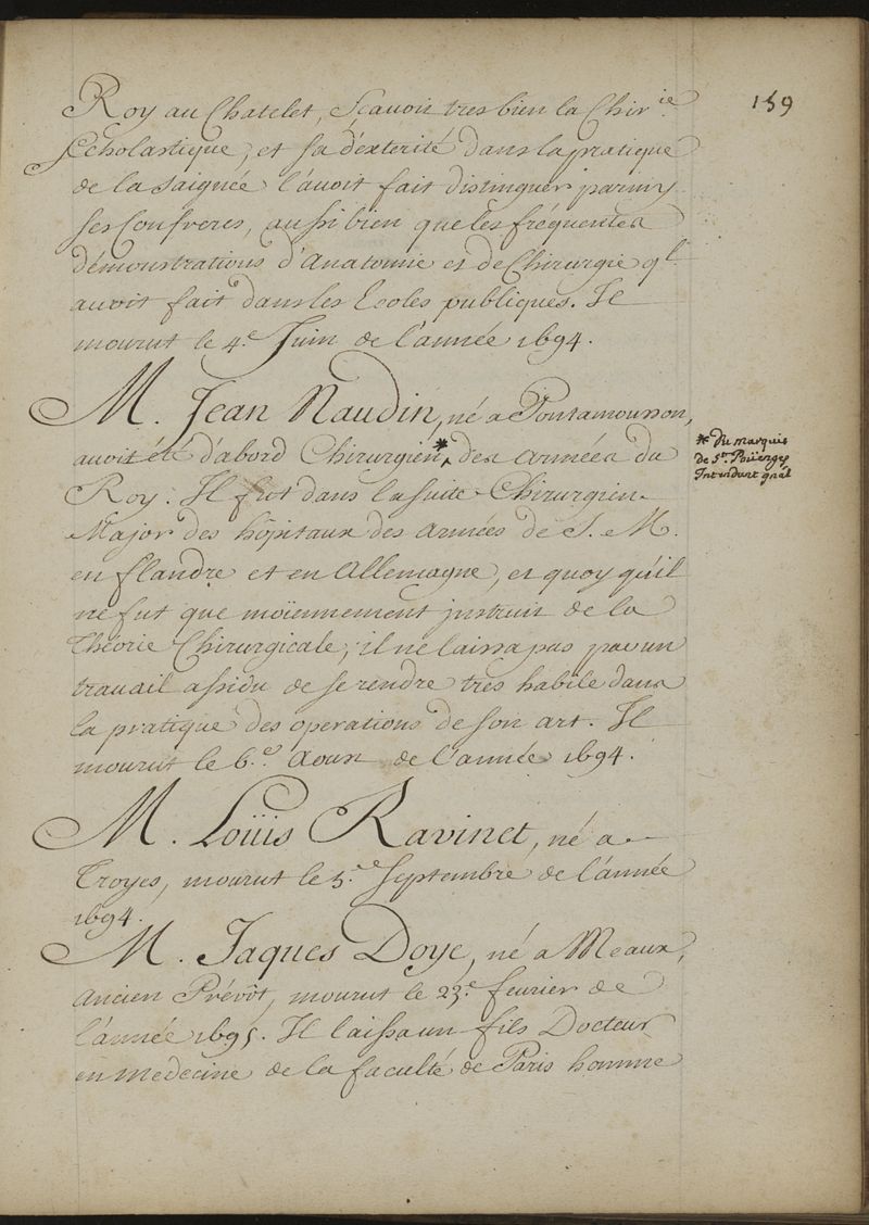Liste funèbre des chirurgiens de Paris, qui sont morts depuis l'année 1315 jusqu'à l'année 1722, avec le génie et les mœurs de ceux qui se sont le plus distinguez dans leur profession. On y a joint quelques remarques sur les principaux évènemens qui sont arrivez dans l'ancien Collège ou depuis son union avec la Compagnie des chirurgiens-barbiers et la réponse à l'auteur d'une description de Paris sur un article de cette liste. Traduction faite sur l'édition latine de la même liste, imprimée à Trévoux, en 1714