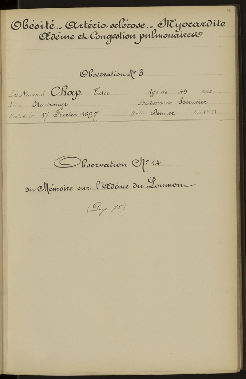 Prix Corvisart - année 1896-1897 - Observations recueillies dans le service de la clinique médicale de l'hôpital de la Pitié