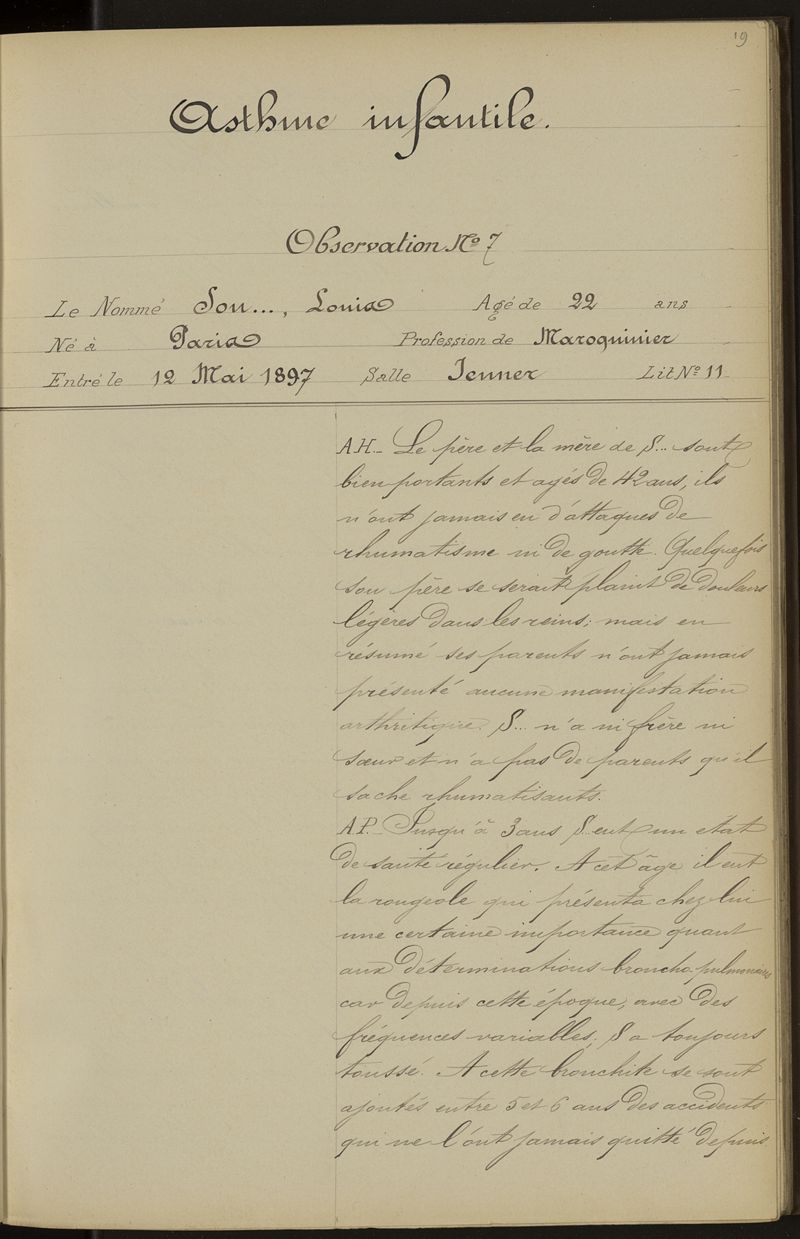 Prix Corvisart - année 1896-1897 - Observations recueillies dans le service de la clinique médicale de l'hôpital de la Pitié