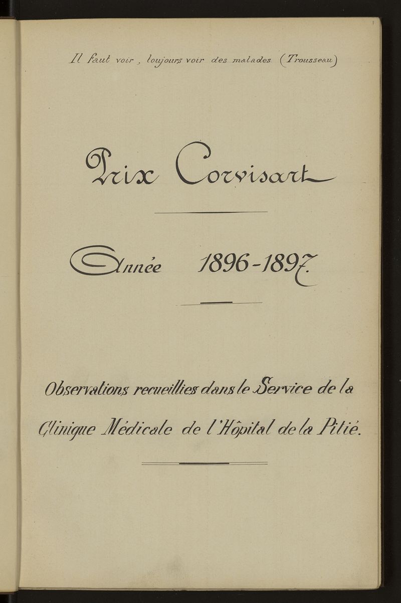 Prix Corvisart - année 1896-1897 - Observations recueillies dans le service de la clinique médicale de l'hôpital de la Pitié
