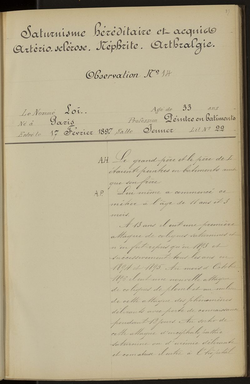 Prix Corvisart - année 1896-1897 - Observations recueillies dans le service de la clinique médicale de l'hôpital de la Pitié