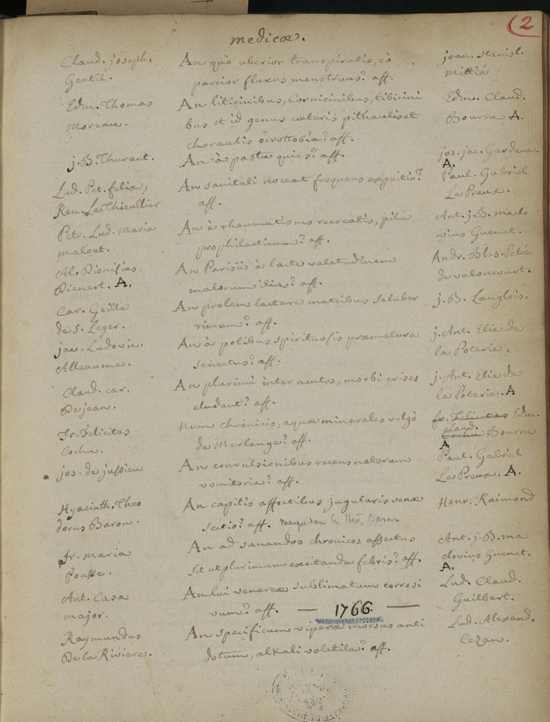 Quaestionum medicarum, quae circa medicinae theoriam et praxim, ante duo saecula, in Scholis Facultatis Medicinae Parisiensis, agitatae sunt & discussae, series chronologica ; cum doctorum praesidium, et baccalaureorum propugnantium nominibus