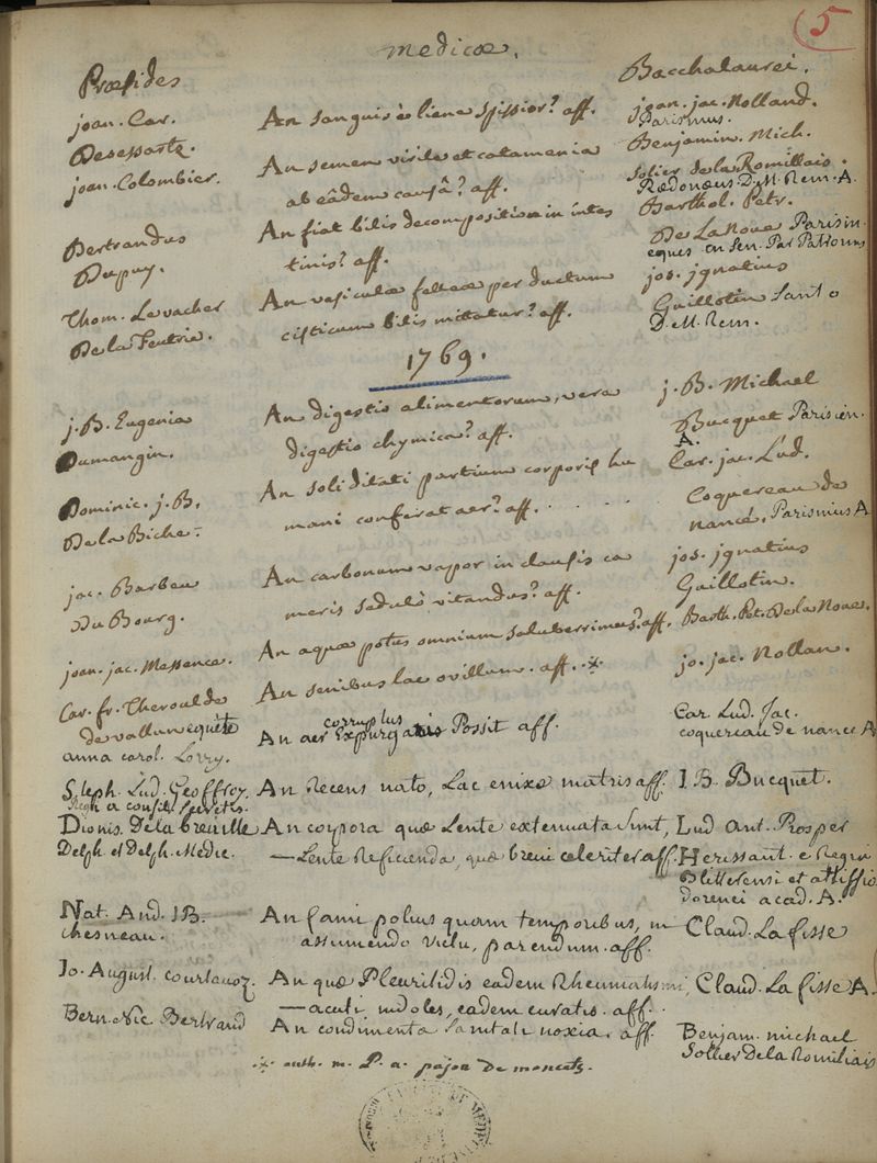 Quaestionum medicarum, quae circa medicinae theoriam et praxim, ante duo saecula, in Scholis Facultatis Medicinae Parisiensis, agitatae sunt & discussae, series chronologica ; cum doctorum praesidium, et baccalaureorum propugnantium nominibus