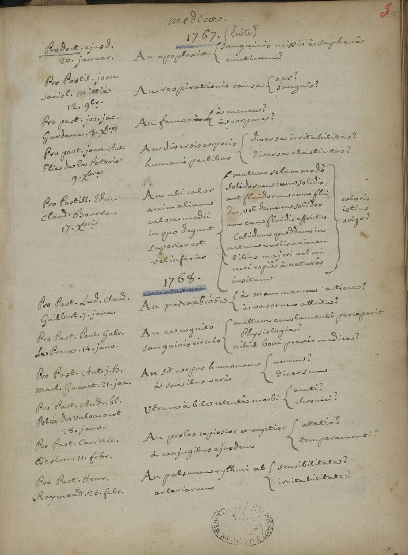 Quaestionum medicarum, quae circa medicinae theoriam et praxim, ante duo saecula, in Scholis Facultatis Medicinae Parisiensis, agitatae sunt & discussae, series chronologica ; cum doctorum praesidium, et baccalaureorum propugnantium nominibus