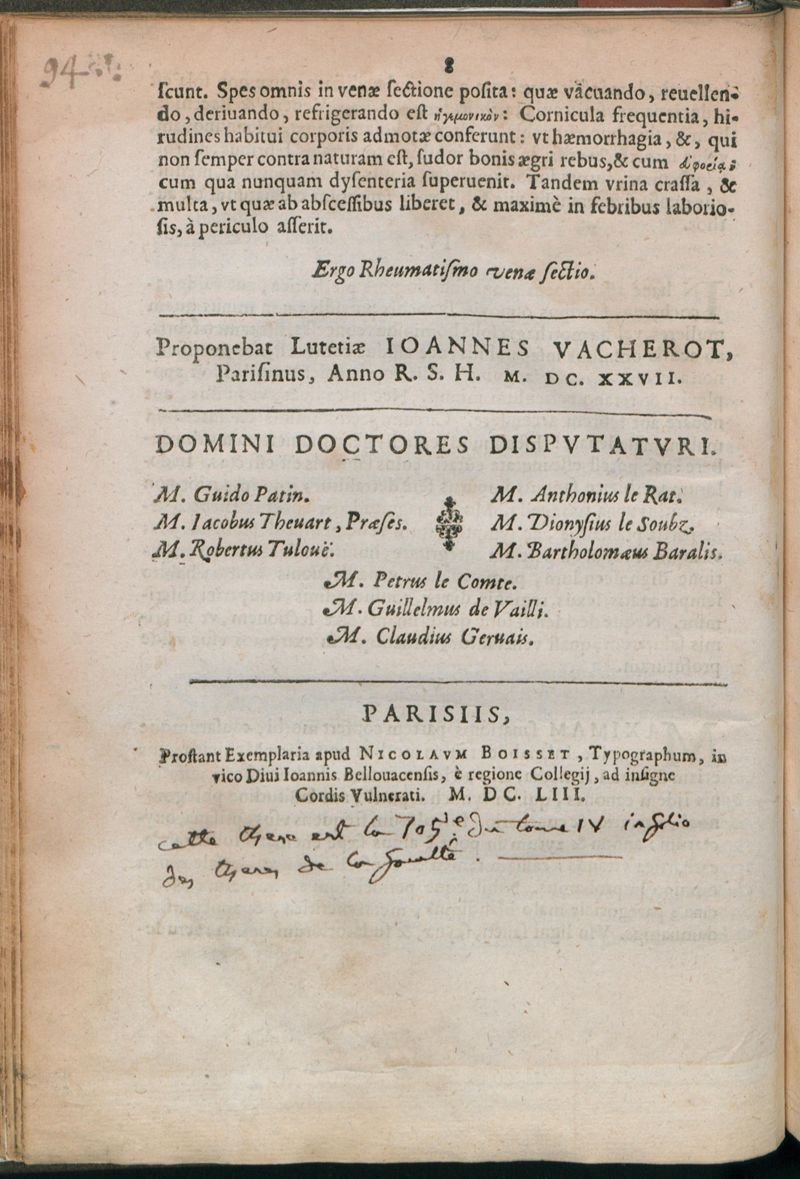 Paris : Prostant Exemplaria apud Nicolaum Boisset, Typographum, in vico Divi Joannis Bellovacensis, è regione Collegii, ad insigne Cordis Vulnerati