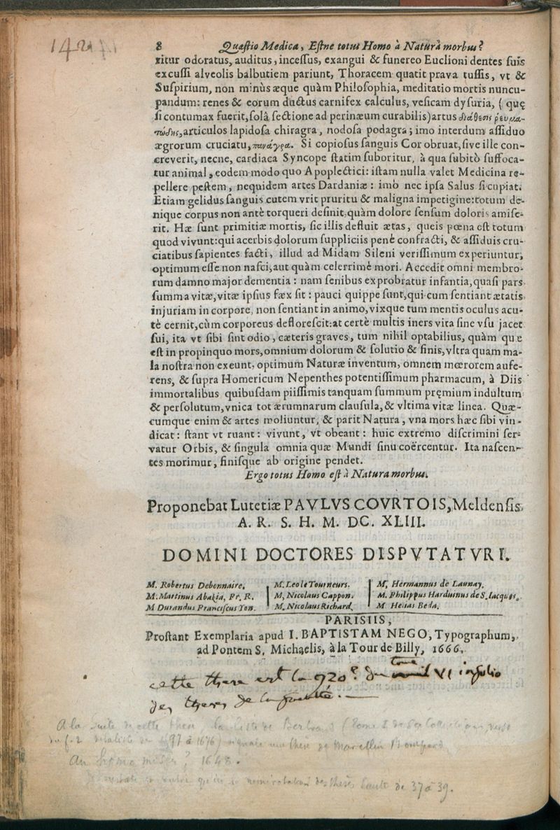 Paris : Prostant Exemplaria apud J. Baptistam Nego, Typographum, ad Pontem S. Michaelis, à la Tour de Billy