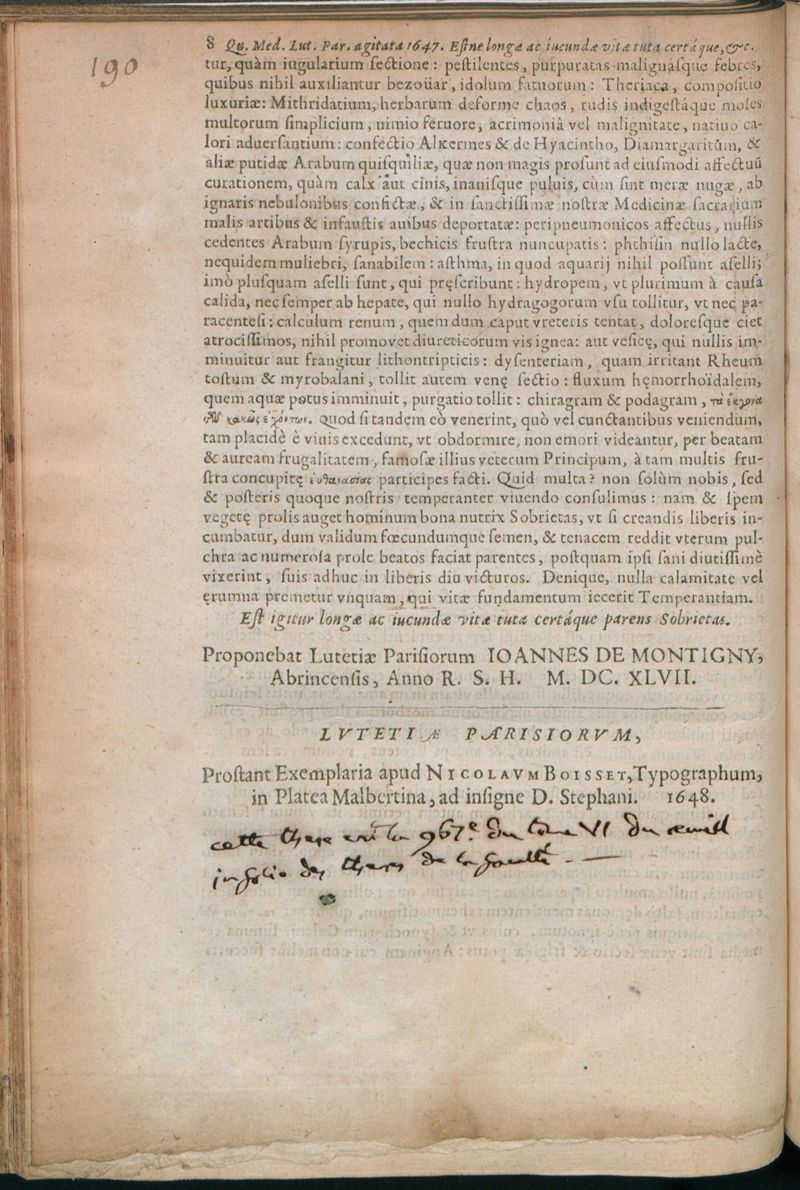Paris : Prostant Exemplaria apud Nicolaum Boisset, Typographum, in Platea Malbertina, ad insigne D. Stephani