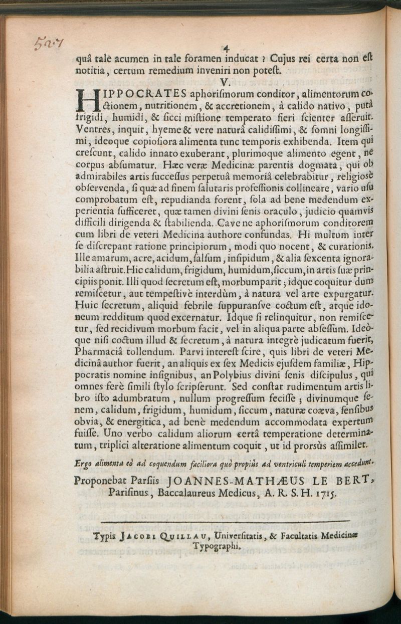 Paris : Typis Jacobi Quillau, Universitatis, & Facultatis Medicinae Typographi