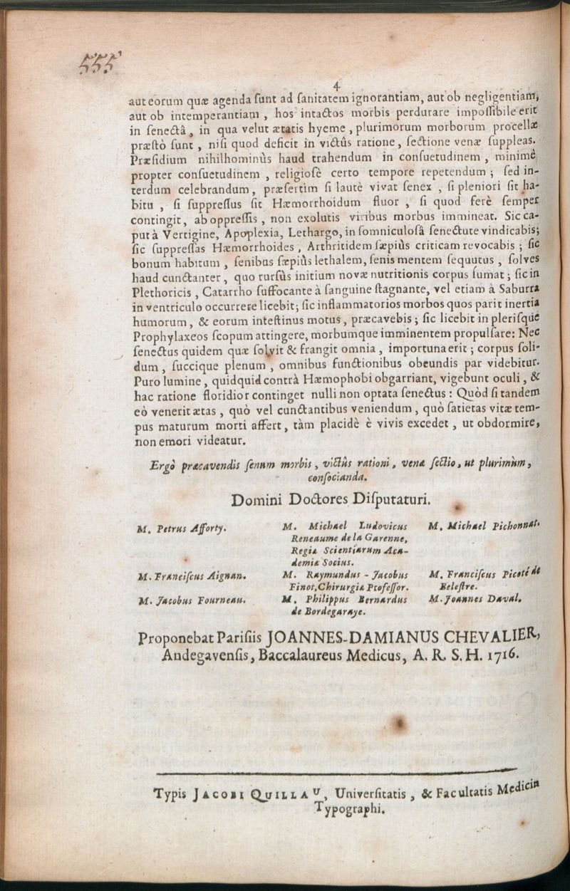 Paris : Typis Jacobi Quillau, Universitatis, & Facultatis Medicinae Typographi
