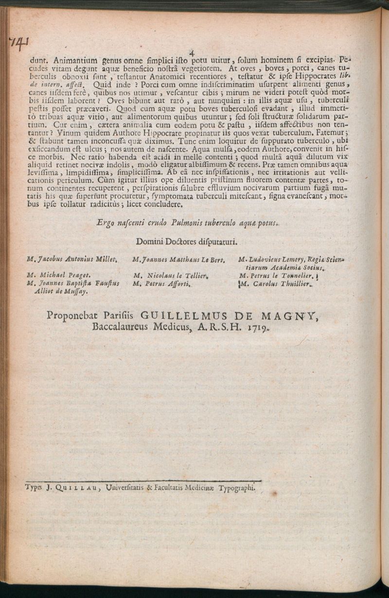 Paris : Typis J. Quillau, Universitatis & Facultatis Medicinae Typographi