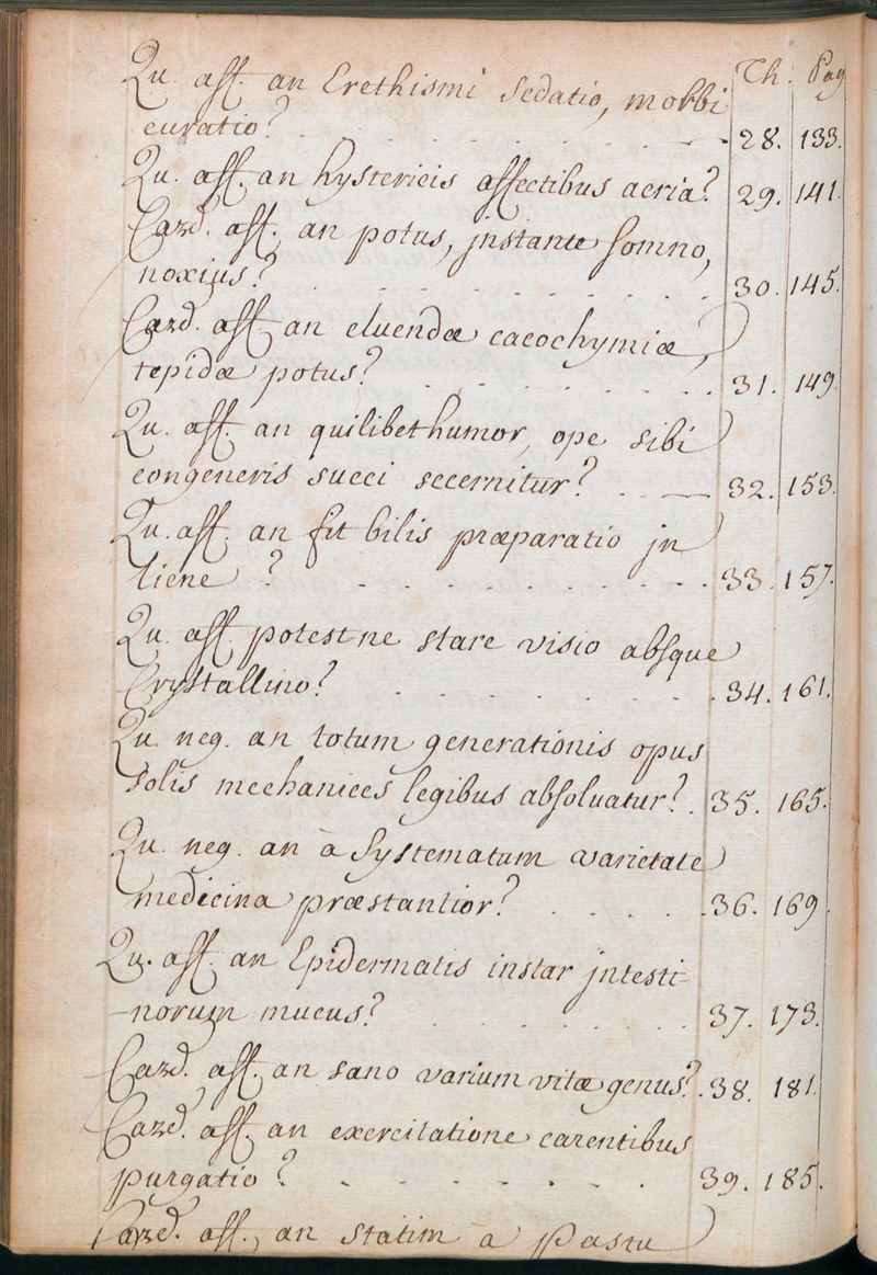 Index Quaestionum tam Quodlibetariarum quam Cardinalitiarum hoc quarto volumine contentarum Ab anno 1705 Ad annum 1720.