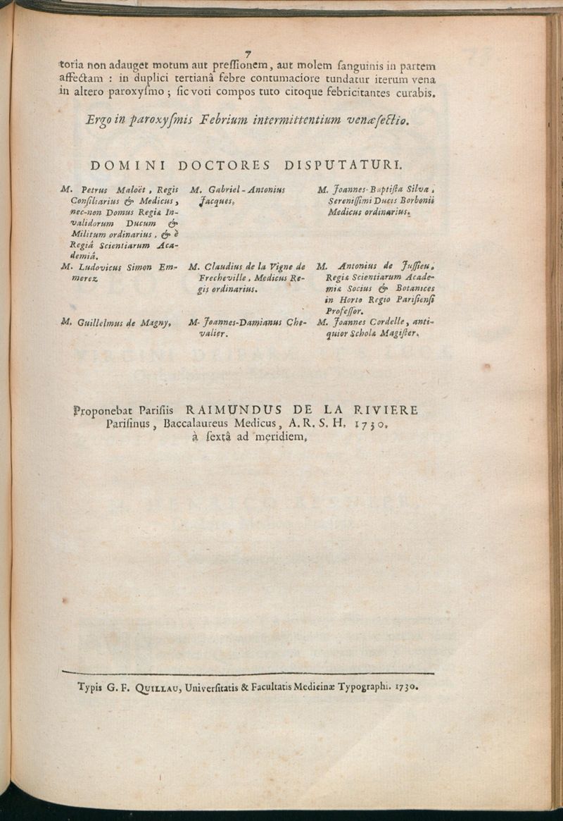 Paris : Typis G.F. Quillau, Universitatis & Facultatis Medicinae Typographi