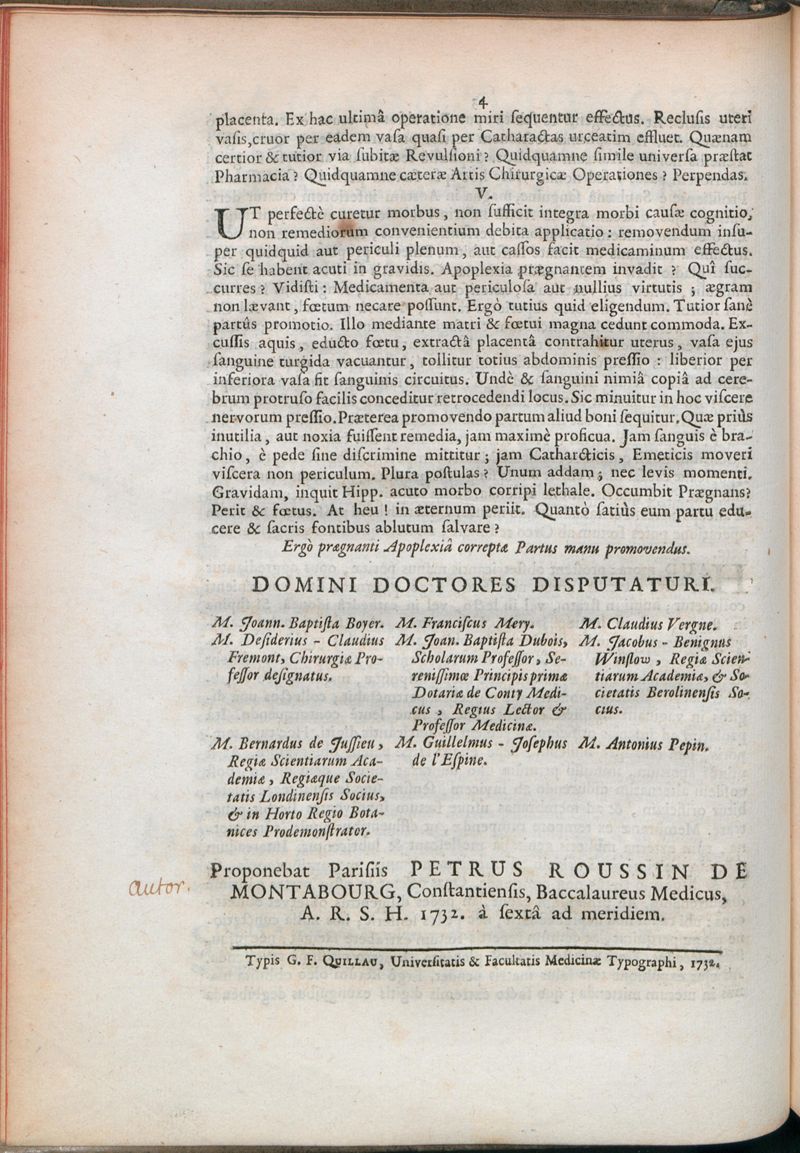 Paris : Typis G.F. Quillau, Universitatis & Facultatis Medicinae Typographi