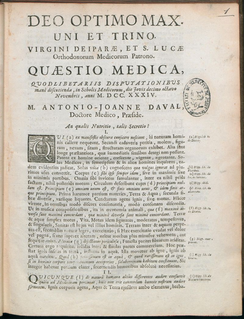 Paris : Typis Quillau, Universitatis & Facultatis Medicinae Typographi