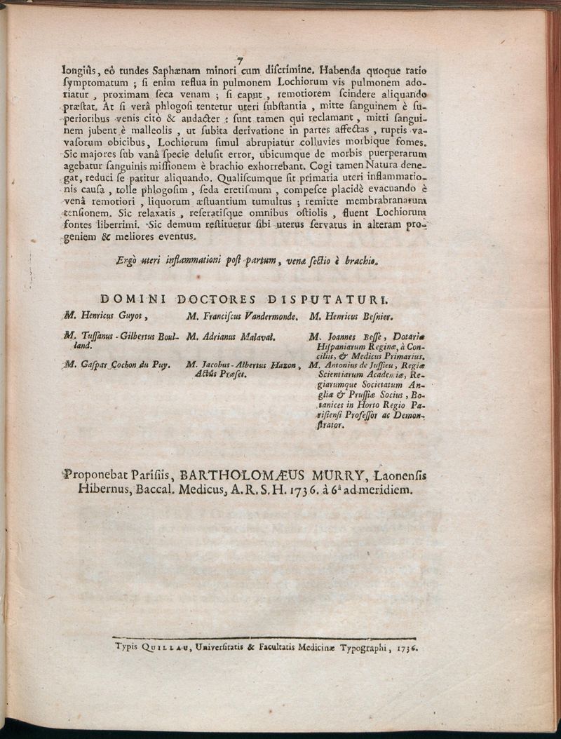 Paris : Typis Quillau, Universitatis & Facultatis Medicinae Typographi