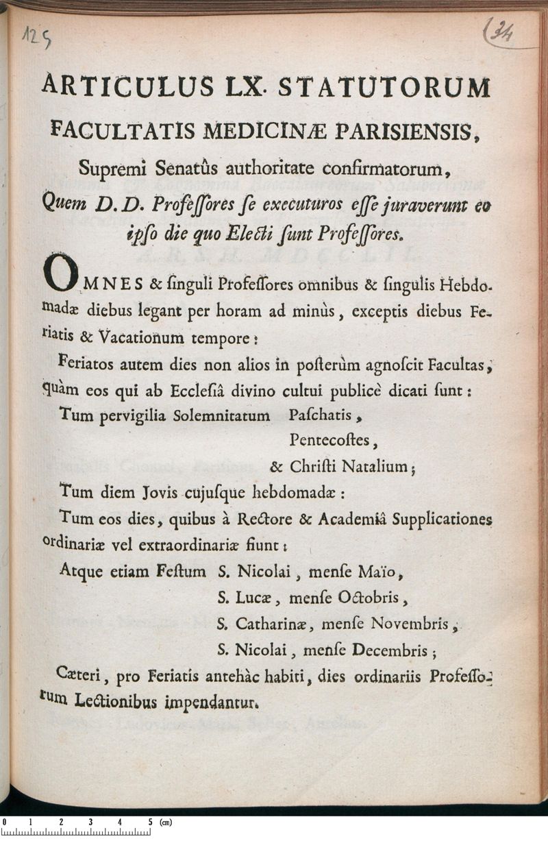 Articulus LX. Statutorum Facultatis Medicinae Parisiensis, Supremi Senatûs authoritate confirmatorum, Quem D.D. Professores se executuros esse juraverunt eo ipso die quo Electi sunt Professores.