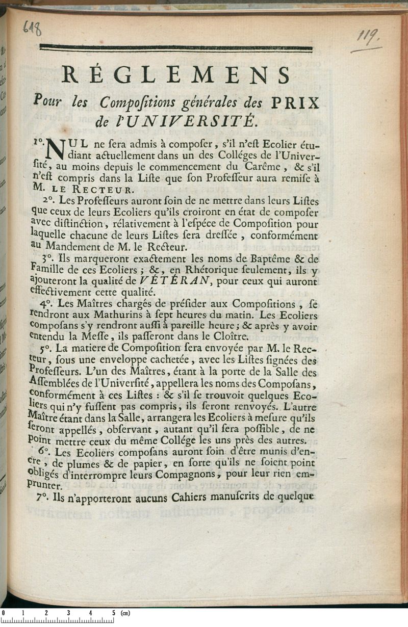 Réglemens Pour les Compositions générales des Prix de l'Université.