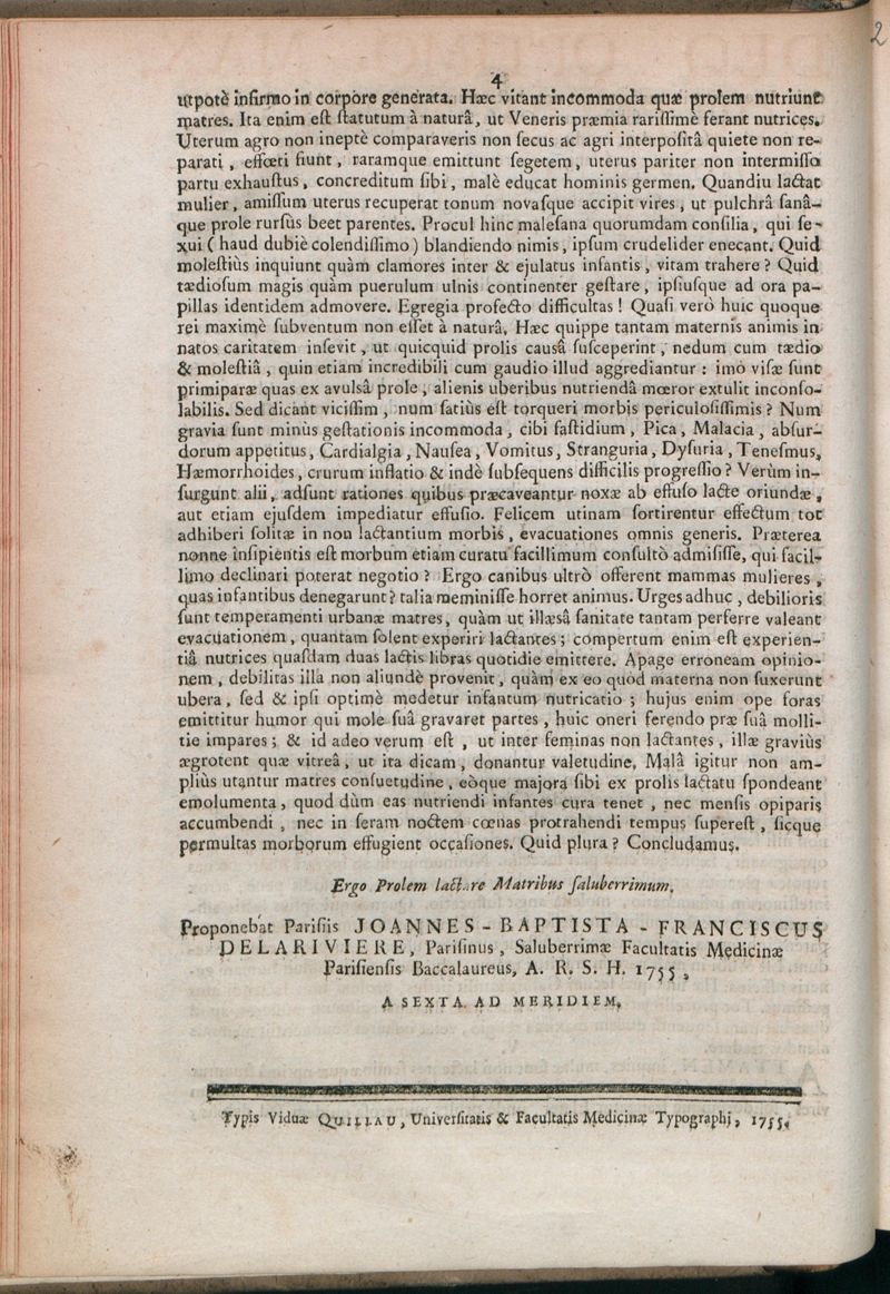 Thèse de médecine cardinale, 1755.