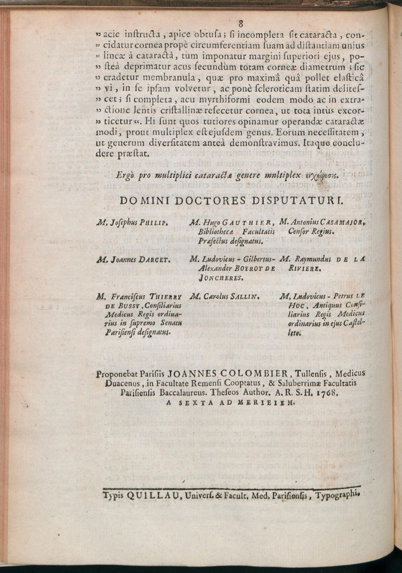 Paris : Typis Quillau, Univers. & Facult. Med. Parisiensis, Typographi