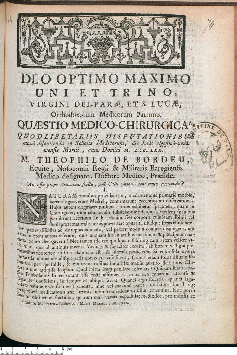Thèse de médecine quodlibétaire, 1770.