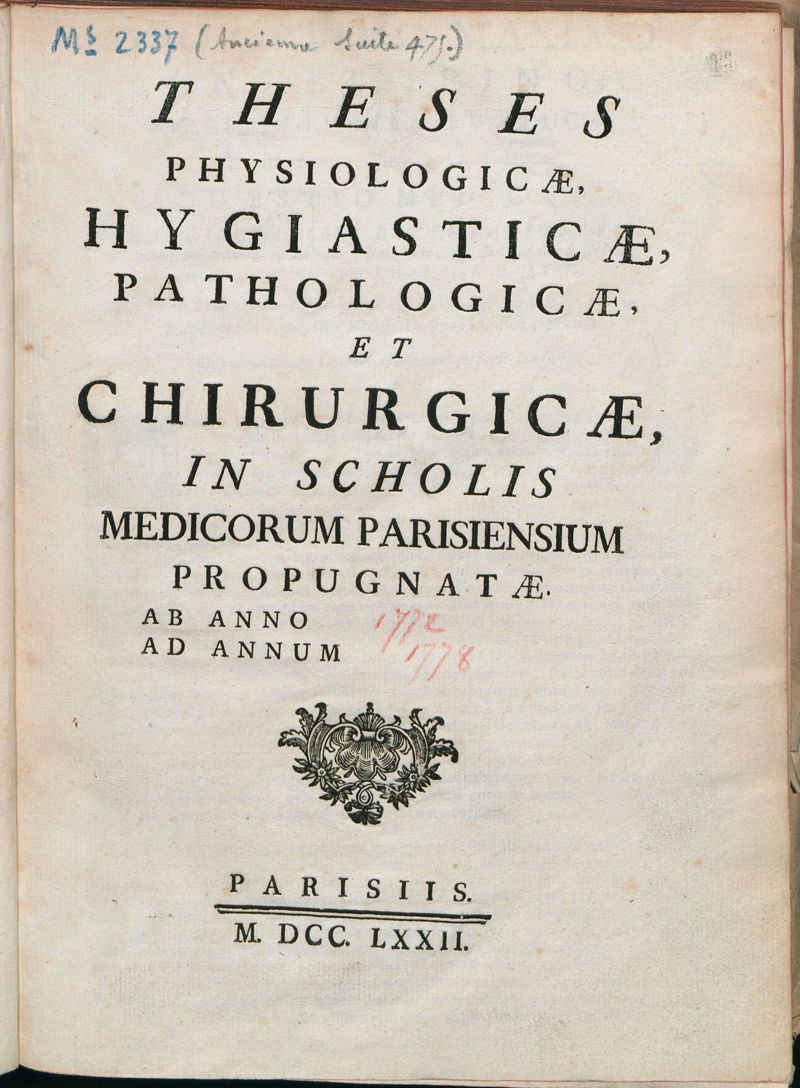 Thèse de médecine quodlibétaire, 1772.