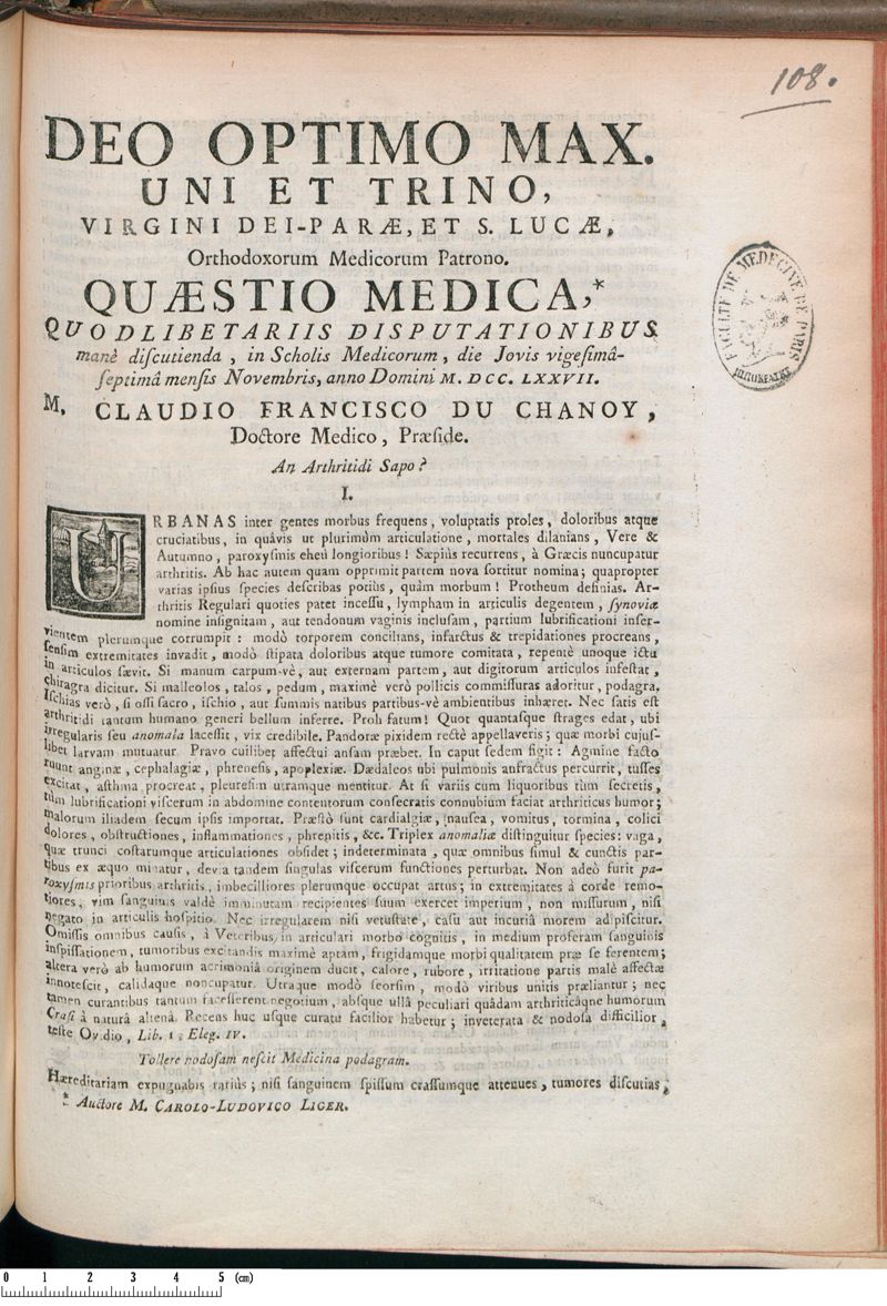 Thèse de médecine quodlibétaire, 1777.