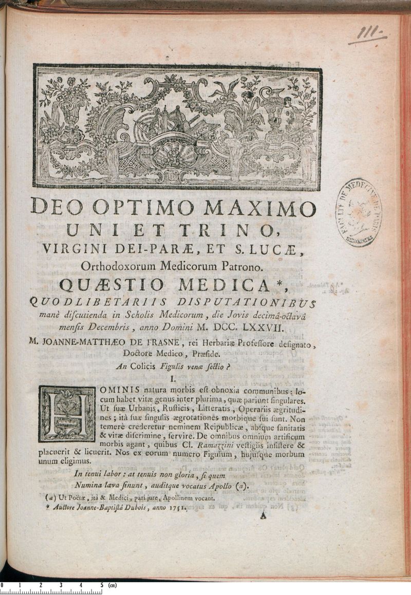 Thèse de médecine quodlibétaire, 1777.