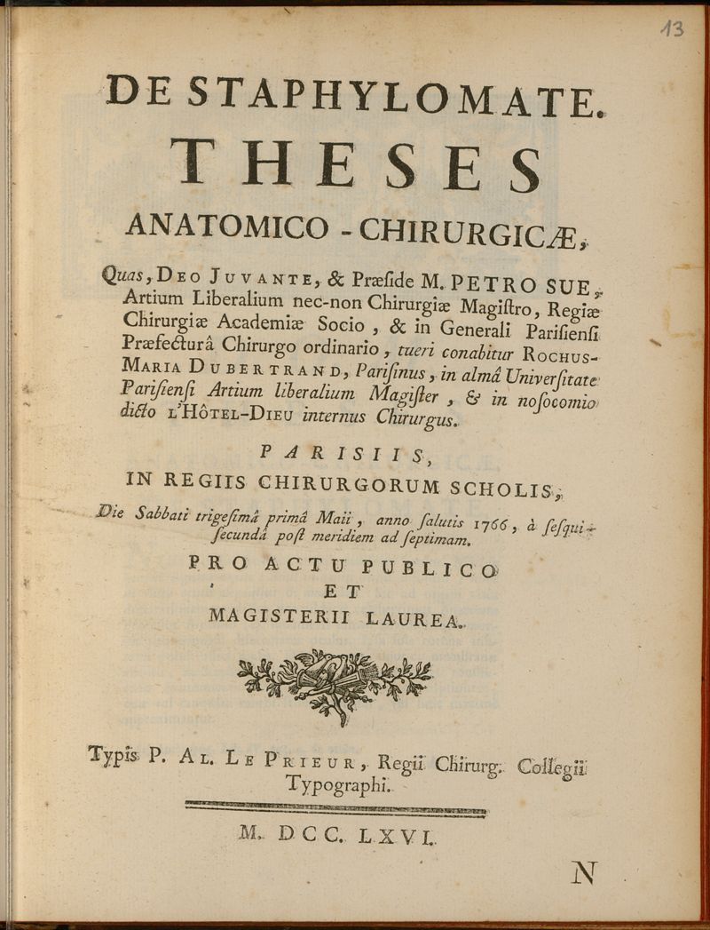 Paris : Typis P. AL. Le Prieur, Regii Chirurgorum Collegii Typographi.