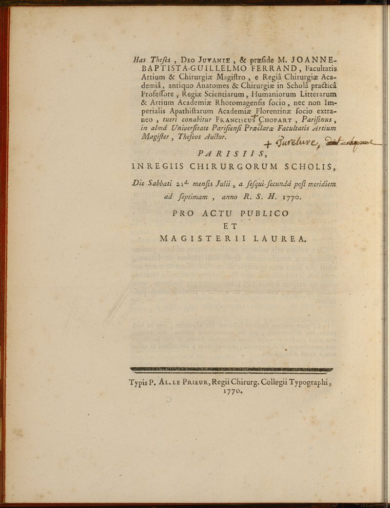 Paris : Typis P. AL. Le Prieur, Regii Chirurgorum Collegii Typographi,