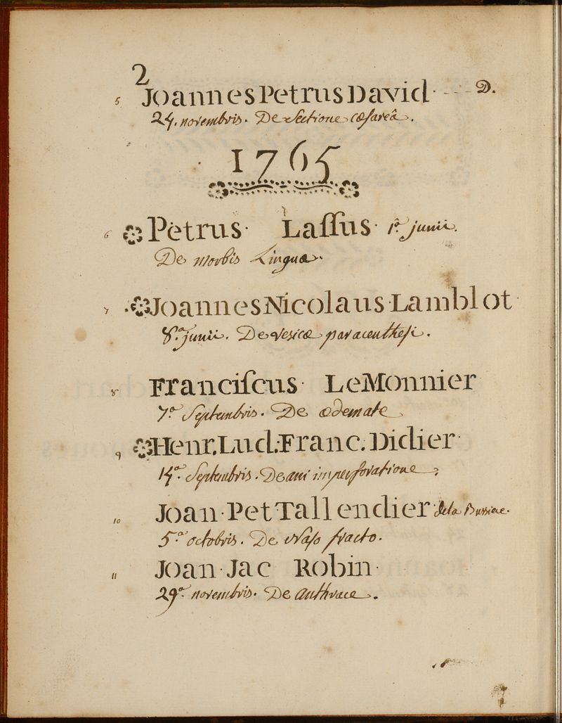 Index thesium (1764-1770) [suivi de] Noms des maitres qui ont présidés aux thèses contenues dans ce recueil avec les noms de ceux qu'ils ont présidés et l'année par ordre alphabétique