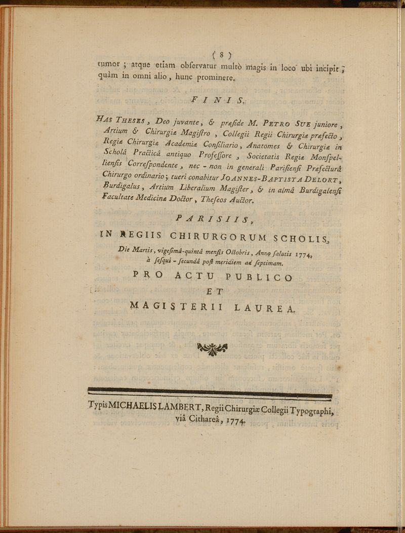 Paris : Typis Michaelis Lambert, Regii Chirurgiae Collegii Typographi, viâ Cithareâ,