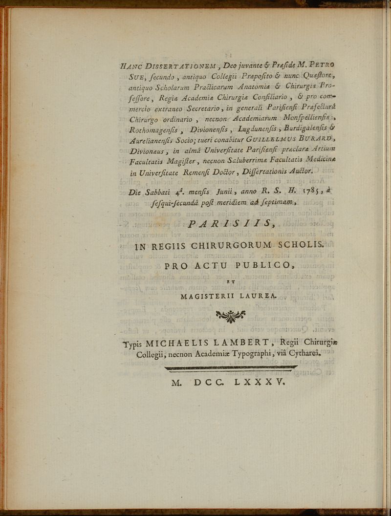 Paris : Typis Michaelis Lambert, Regii Chirurgiae Collegii necnon Academiae Typographi, viâ Cithareâ,